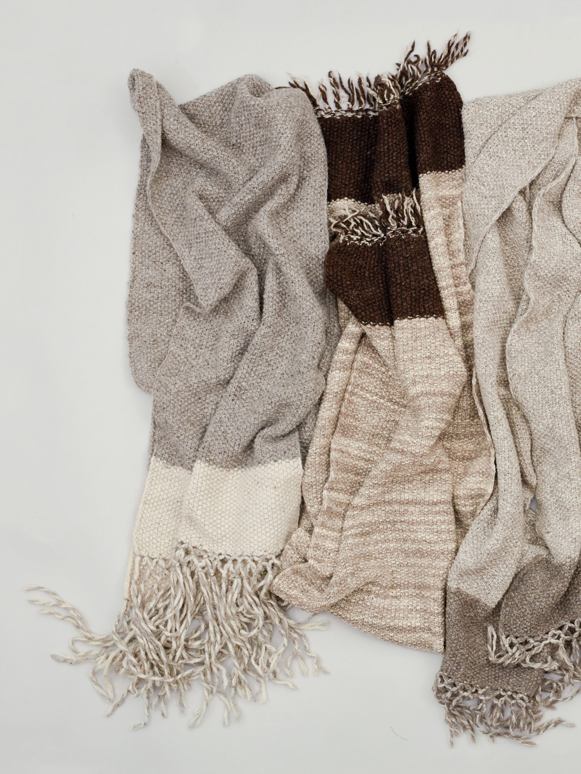 Our mufflers are a generous size. Each one is created by a single knitter using their own sheeps distinctive wool. No two pieces are alike and offer a variety of natural tones and patterns.